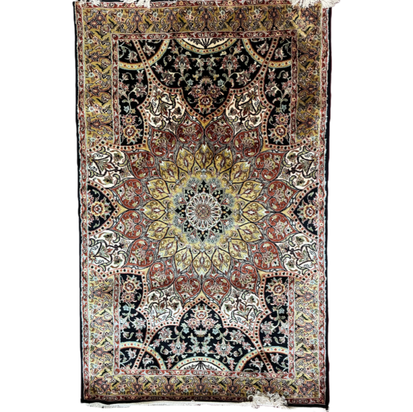 The handmade, luxurious rest-color semi-design carpet in a 3 x 5 feet size features elegant patterns and a soft palette, adding sophistication to any room. Its exquisite craftsmanship ensures a unique and stylish accent, enhancing the warmth and charm of your decor.